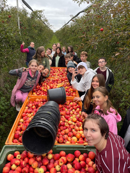 Žiaci 7.A triedy oberali jablká v ovocnom sade v Ostraticiach.