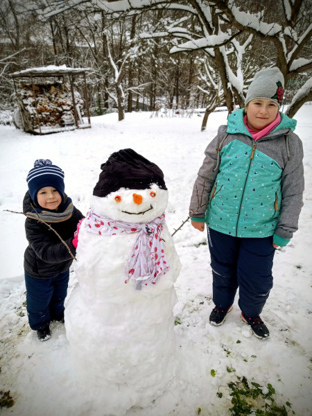 Jeden z naších snehuliakov, tvorený s veľkou radosťou s prvého snehu.