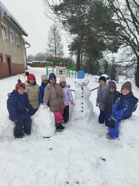 A už stojí snehuliačik, a už stojí tam. A keď deti uvidia ho, povedia si tak, pozrite sa aký je to, krásny snehuliak!